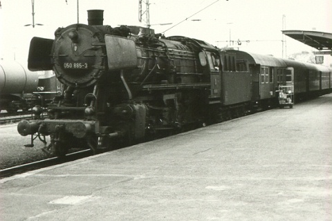 50 885 vor dem abendlichen Personenzug nach Eschwege, Bettenhausen 1973 |
