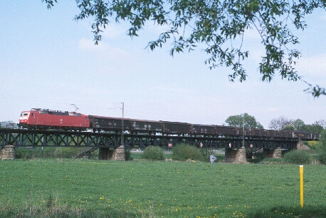 120 mit Güterzug auf der im Text erwähnten Fuldabrücke |