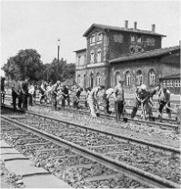 Szenen am Bahnsteig in der 50er Jahren |
