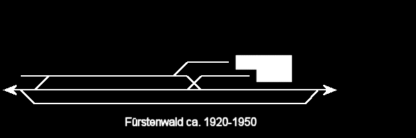 Fürstenwald hatte einst den typischen Gleisplan preussischer Nebenstrecken. Heute ist davon nur noch das Durchgangsgleis vorhanden. Das Empfangsgebäude wird privat genutzt, dem Reisenden stehen zwei Wartehäuschen zur Verfügung. |