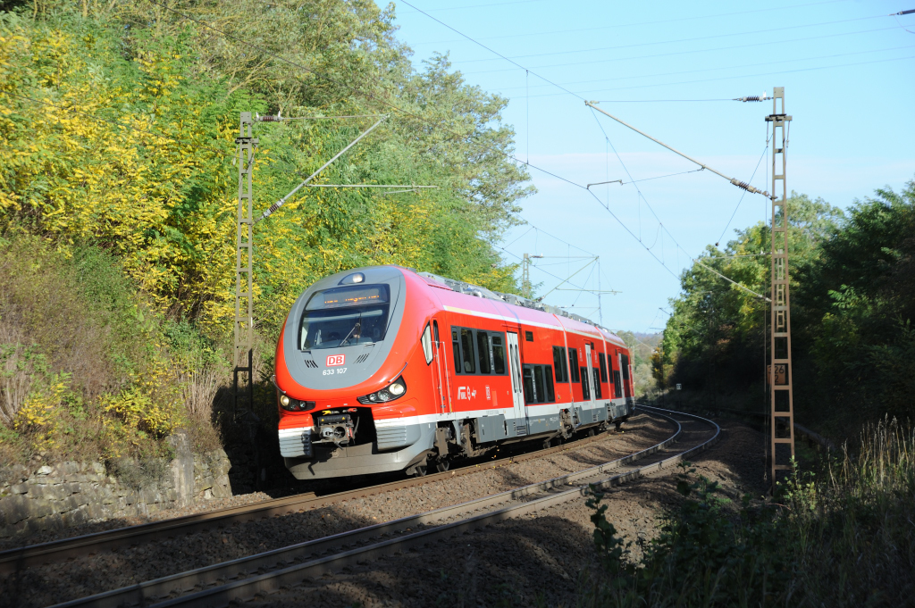 | Ein 633 nach Hagen legt sich in die Kurve der Einfahrt von Kassel (13.10.2019). Hier beginnt die "Neubaustrecke" von 1875. |