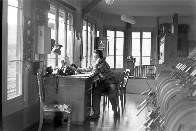 Diesem Mann verdanken wir die beiden vorigen Aufnahmen: Fahrdienstleiter Bechtel bei seiner Arbeit auf dem Stellwerk Grf. |