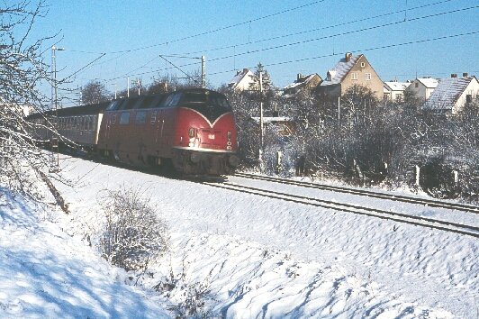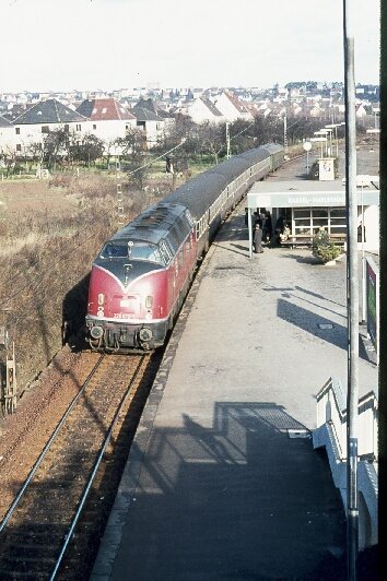 Im Winterfahrplan 74/75 kam eine 220 mit einem Nahverkehrszug aus Warburg nach Kassel