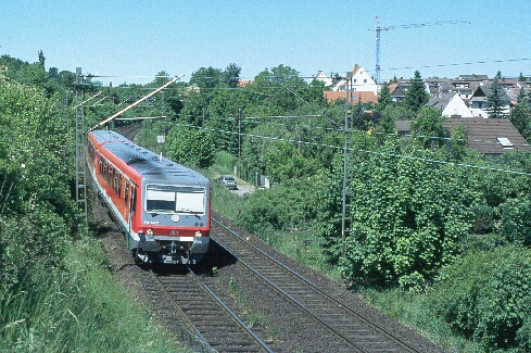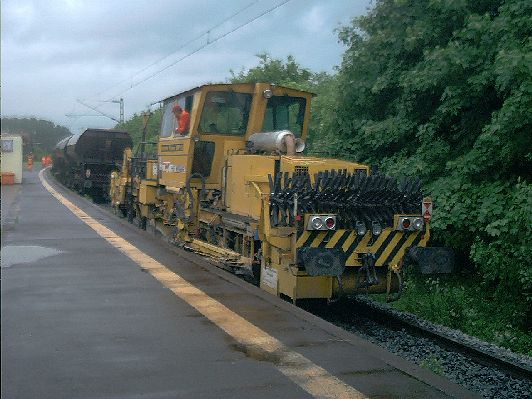 Wir haben einen Sprung in die Gegenwart gemacht: bei kaltem, regnerischen Wetter werden Pfingsten 2001 die Vorbereitungen für die Regio- Tram getroffen.