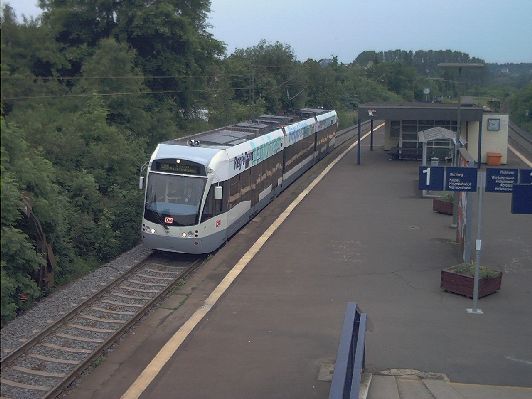 Eine Woche später ist es dann soweit: am 10. 06.2001 erreicht die erste Tram, aus Warburg kommend, um 7:49 Uhr Kassel- Harleshausen. Die prachtvollen Gebäude vom ersten Bild sind bei der Elektrifizierung der Strecke abgerissen worden, aber auch der Neubau von 1970 ist mittlerweile eine Ruine.