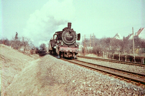 Die Baureihe 38 war 1966 nicht mehr in Kassel beheimatet. Es kamen aber immer noch Loks "zu Besuch", wie hier 38 3362 mit Personenzug nahe des Haltepunktes Harleshausen.