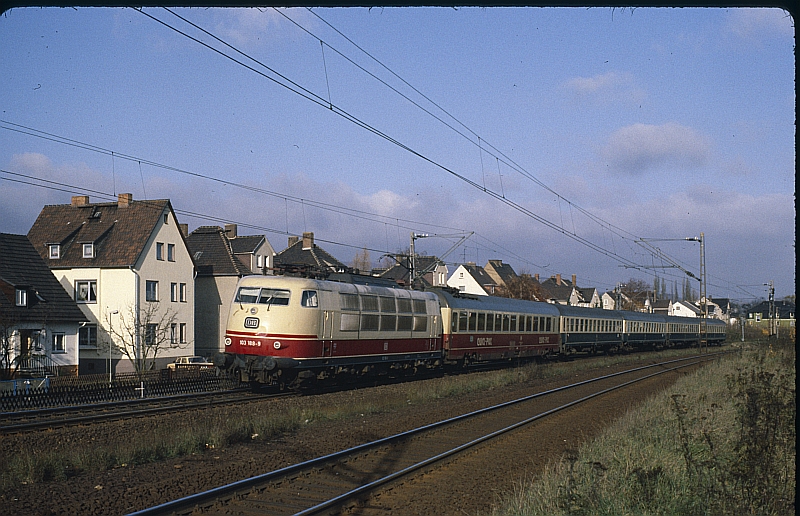 Eine 103 mit dem Vorzug zum D371 hat Oberzwehren passiert und wird bald Rengershausen erreicht haben. |