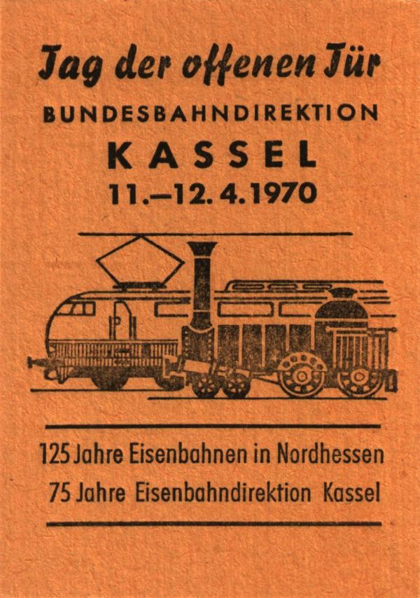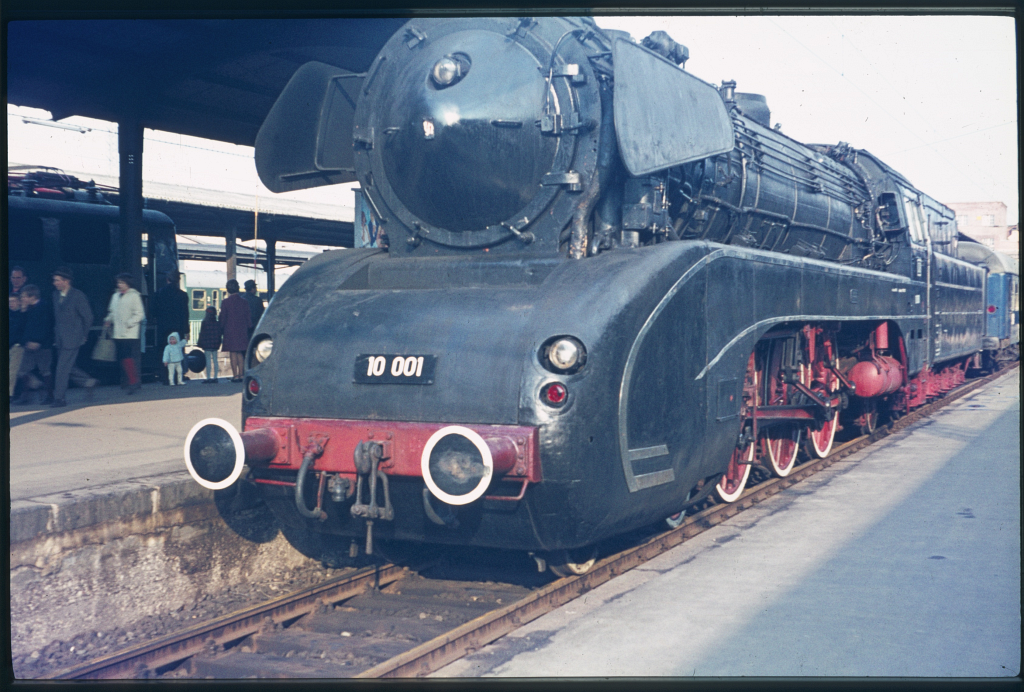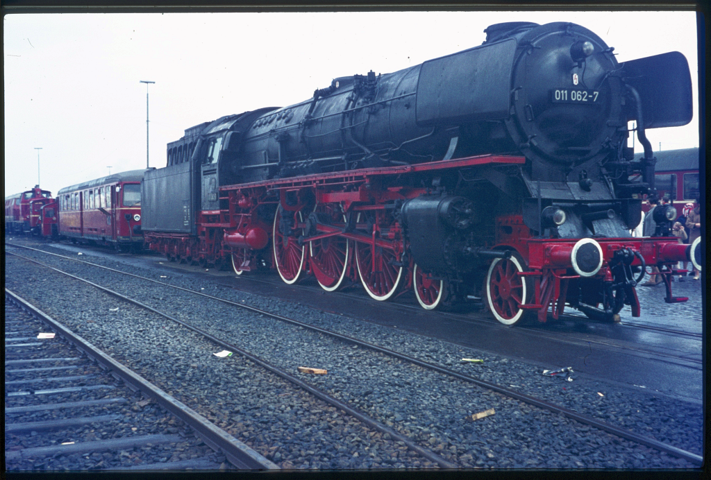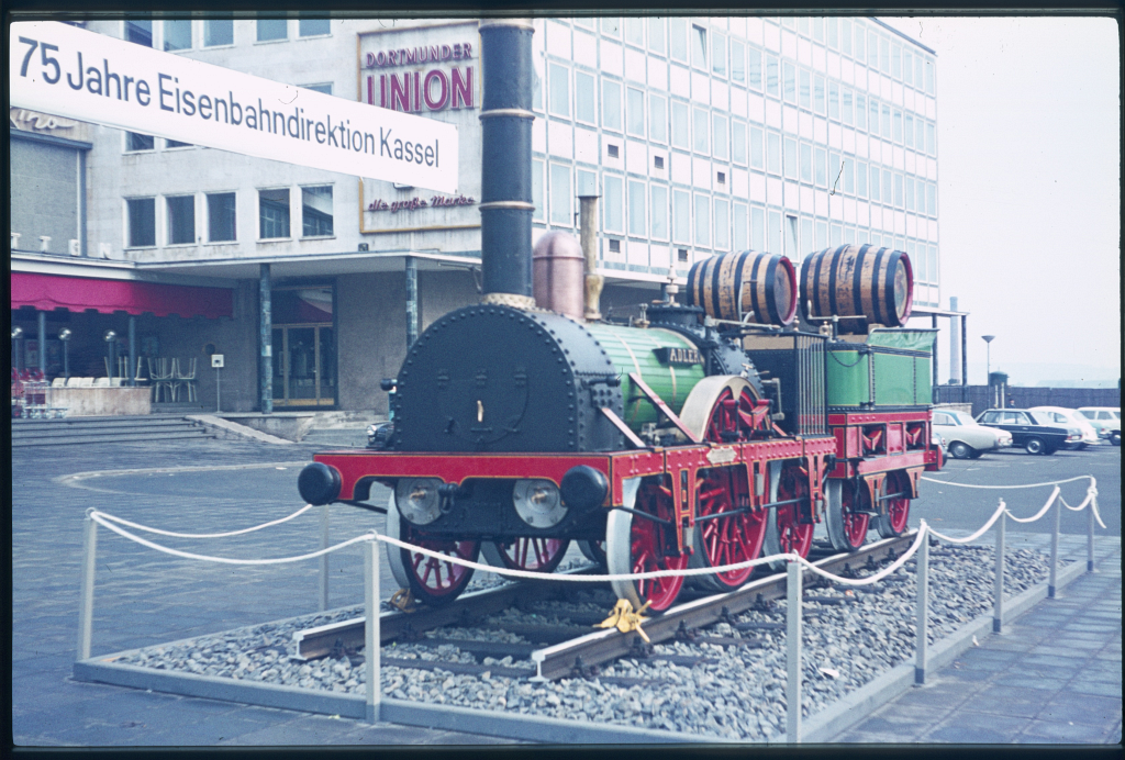 Im Bahnhof Unterstadt gab es die (kalte) 01 1062 zu bewundern. Sie war das letzte Exemplar dieser Baureihe in Kassel und wurde noch als Ersatzlok vorgehalten. Bereits im Mai 1970 war sie in Rheine als 011 062-7 wieder im Betrieb (siehe www.dampflokomotivarchiv.de). |