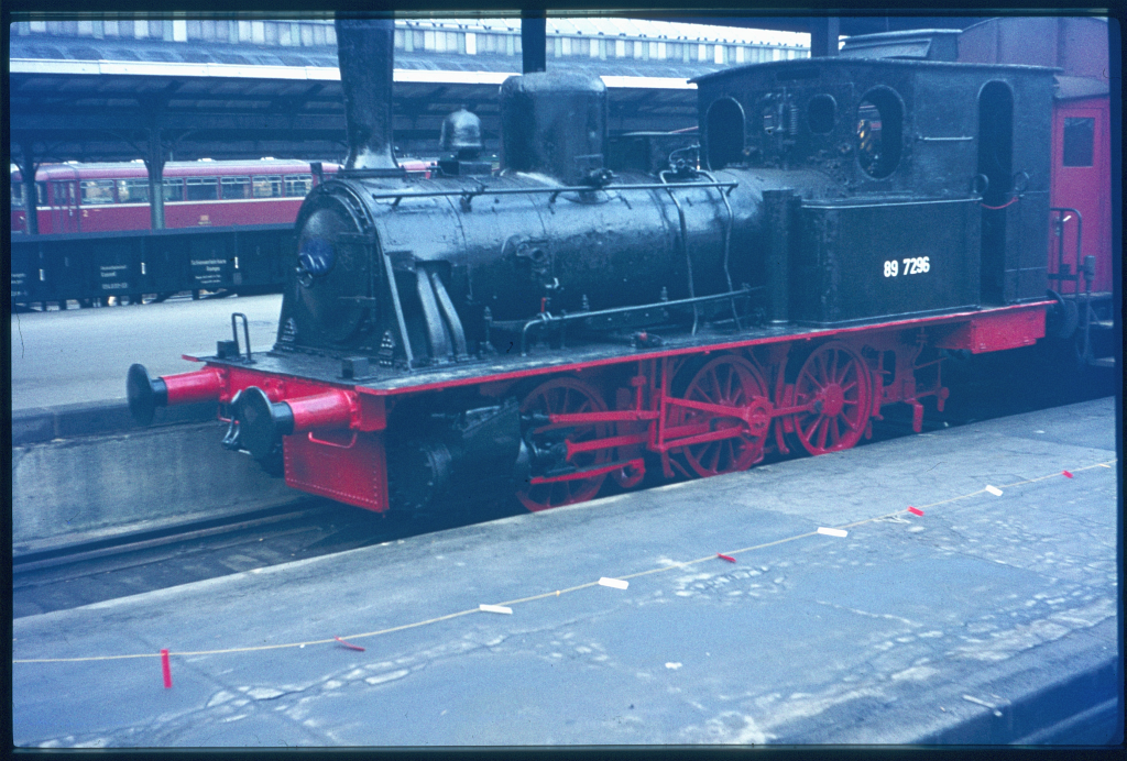 Ein Kasseler Urgestein ist die 89 7296. Sie verdiente ihr Gnadenbrot bis Mitte der 60er Jahre im Bahnbetriebswerk "Bahndreieck" mit dem Verschieben von Lokomotiven. |