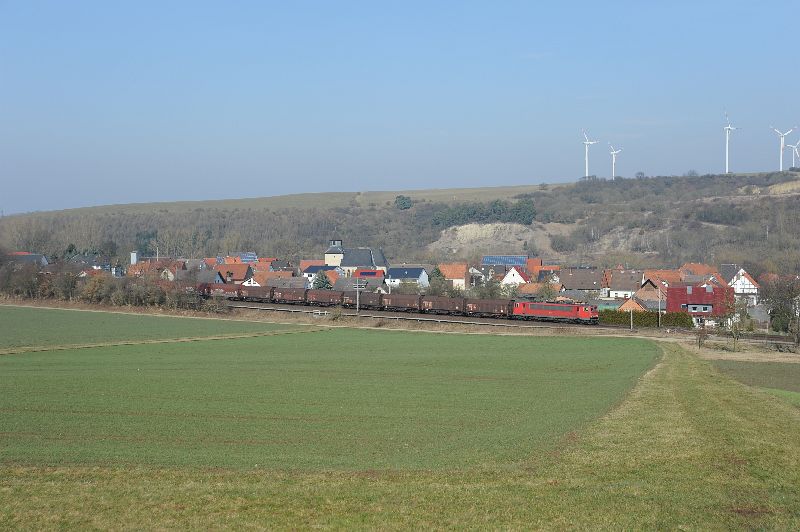 Güterzüge machten sich an diesem Tag rar. Diese beiden mit 155 bespannten Züge fotografierte ich bei Haueda. |