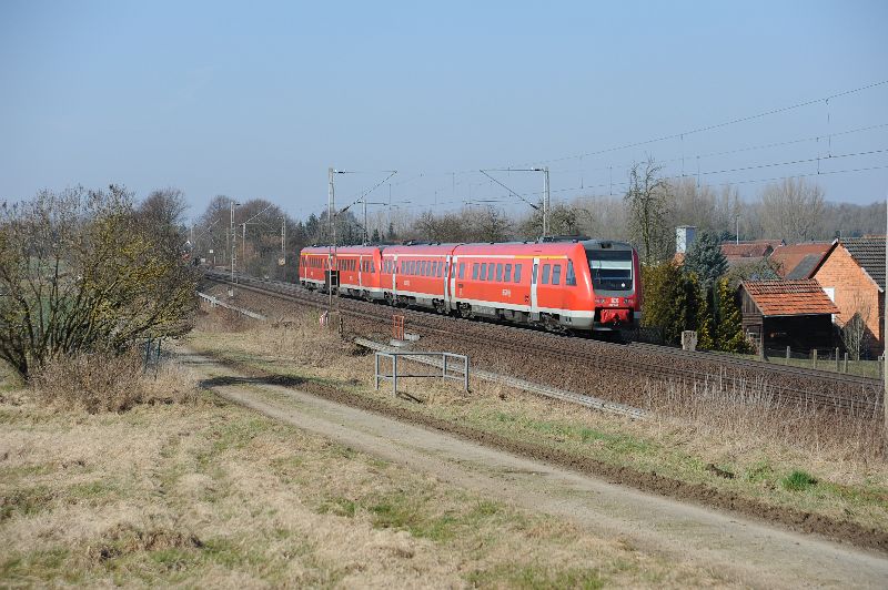 Der Regionalexpress aus Hagen folgt im Blockabstand. Die Aufnahmen entstanden bei Mönchehof, Streckenkilometer 332 |