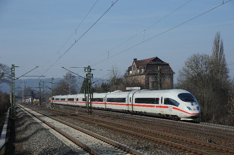 | In den ersten beiden Märzwochen wurden die Frankfurter ICE über die Main- Weser- Bahn umgeleitet- Grund genug, dieser schönen Strecke bei Zimmersrode einen Besuch abzustatten. |