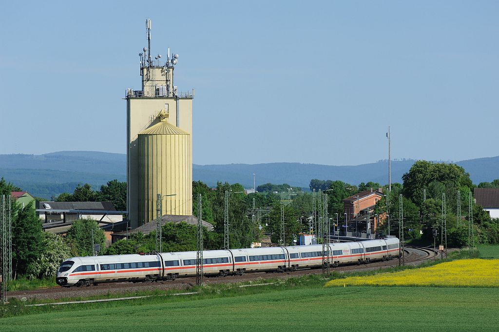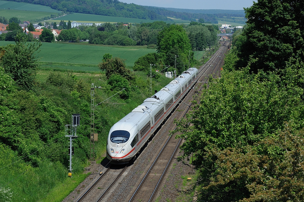 Endlich Sommer: am 5. Juni legt sich ein unbekannter 411 als ICE1746 in die Kurve hinter Mönchehof. |