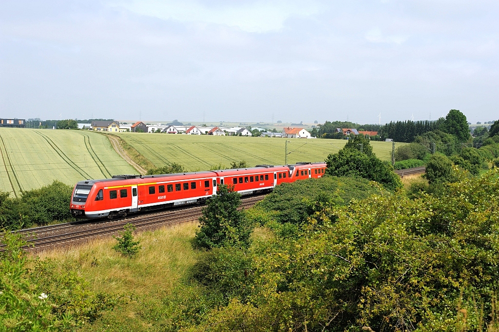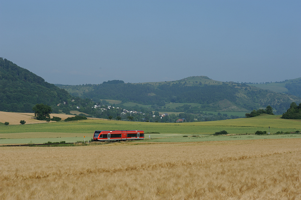 RE3907 hat gerade den Bahnhof Immenhausen passiert und dieselt jetzt gen Mönchehof (14. Juli) |