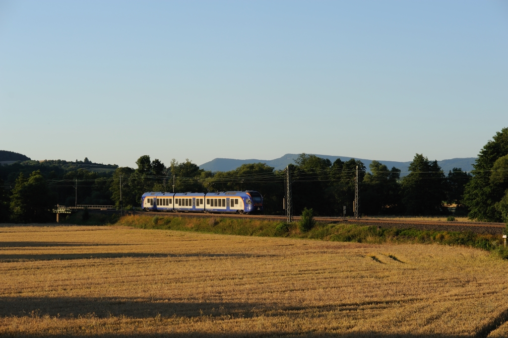 Ein dreiteiliger FLIRT der cantus- Bahn folgte, danach ging die Sonne hinter den Hügeln unter. |