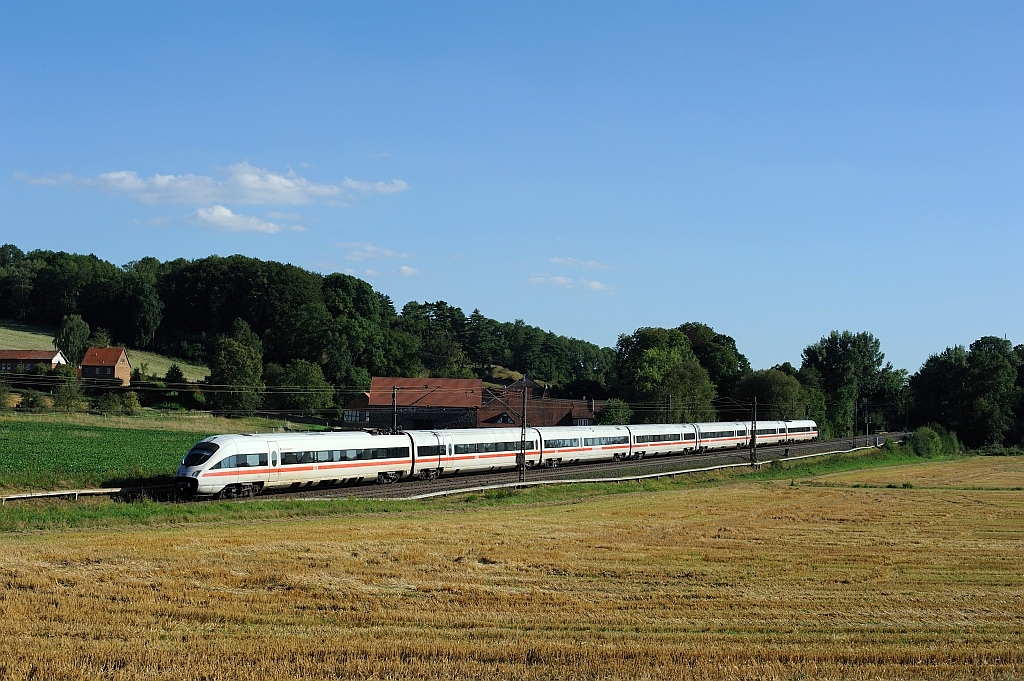 Nun ist der Herbst nicht mehr weit: am 5. September passiert ICE1746 Gut Kressenbrunnen bei Grebenstein an der Friedrich-Wilhelms-Nordbahn. |