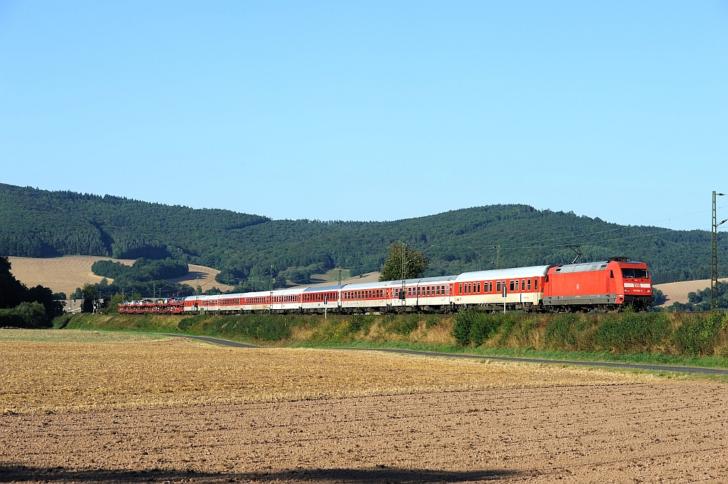 120 154 mit klassischer IC-Garnitur (IC2279 )bei Felsberg-Gensungen am 13. Juli. |