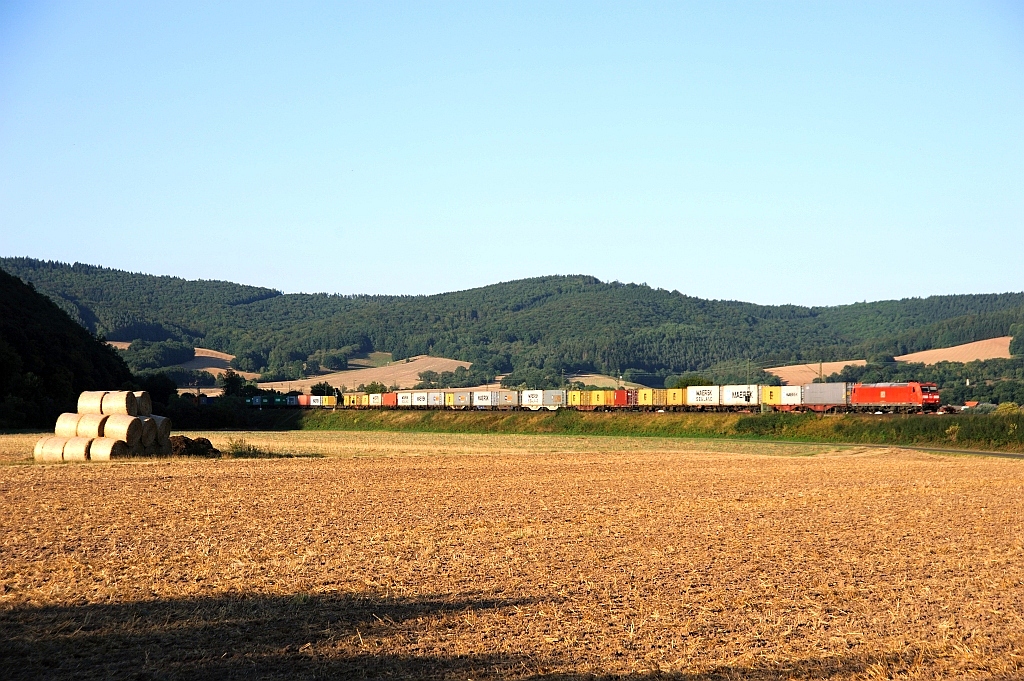 Nördlich von Bad Sooden Allendorf bietet sich nachmittags diese "Paradestrecke" an: Taurus mit Kisten für den Süden am 2. August. |