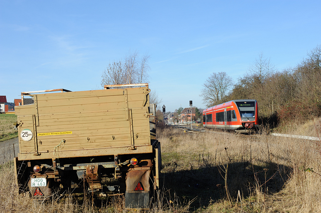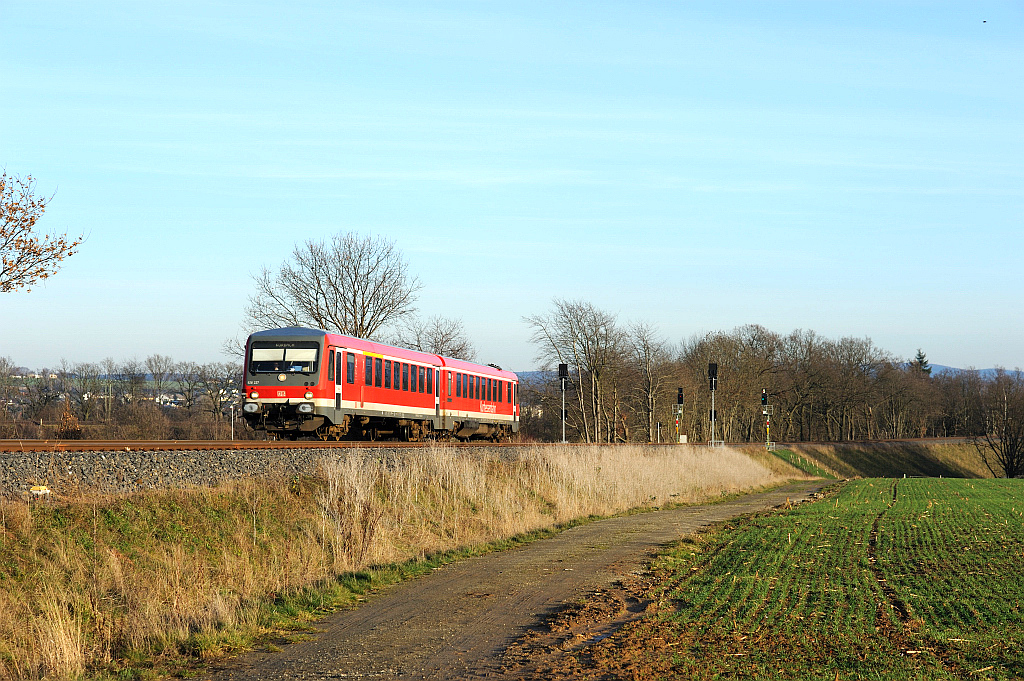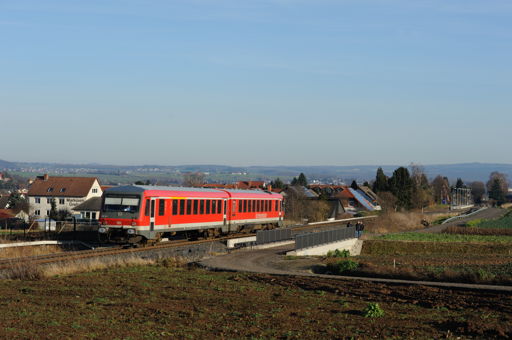 Das Jahr ist zu Ende: am Silvestertag fährt ein 646 nach Kassel-Wilhelmshöhe durch Weimar (Bez. Kassel). |