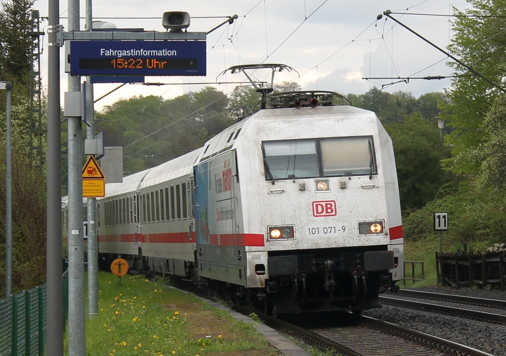 Neue Farbgebung der BR 101 im IC-Verkehr? Nein, die Lok war derzeit als Werbeträger für die Firma Märklin unterwegs. Dr. David