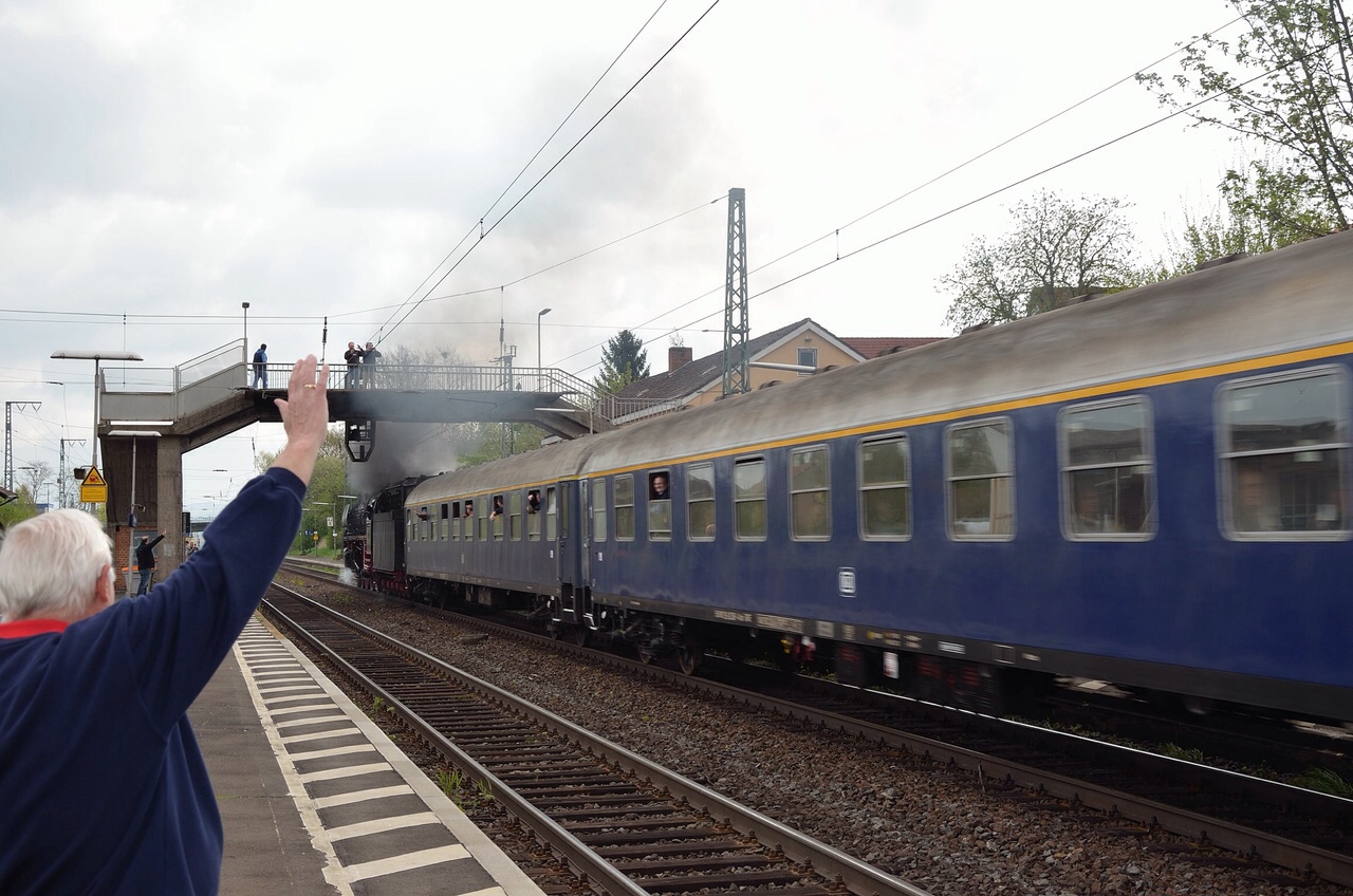 Der Herr, der hier links im Bild den Reisenden so freundlich zuwinkt, fühlte sich in seine Anfangsjahre bei der DB zurückversetzt. Fuhr Er