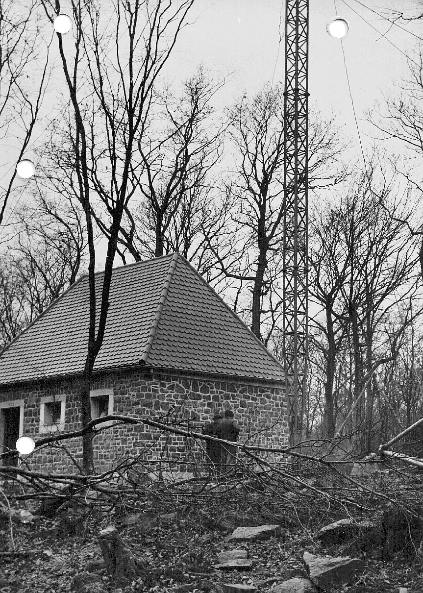 | Auf dem Allmutsberg südöstlich von Homberg standen ein 42 m hoher Sendemast und ein Betriebsgebäude. Dieses war über eine 4,5 km lange Leitung mit dem Streckenfunkstellwerk verbunden. Von dort aus wurde der Allmutsberg auch über eine 3kV-Leitung mit elektrischer Energie versorgt. Über Richtantennen mit einer Leistung von zusammen 50 W wird die 40 km lange Strecke komplett abgedeckt. |