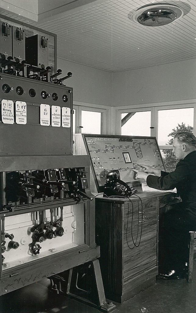 | In den 1950er Jahren wollte die Deutsche Bundesbahn den Betrieb auf Nebenstrecken vereinfachen. Jeder kennt die roten Schienenbusse, deren Betriebskosten deutlich unter denen eines lokbespannten Zuges lagen. Zwischen Malsfeld und Treysa wurden auch streckenseitig Vereinfachungen getestet: dieser Abschnitt der Kanonenbahn wurde von nur noch einem (Linien-) Fahrdienstleiter gesteuert. Die Befehle an die Triebfahrzeugführer wurden per Funk übertragen und mittels Leuchtmelder angezeigt. Die Standorte der Fahrzeuge wurden auf dem gleichen Weg an das Streckenstellwerk gesendet und dort optisch angezeigt. Der Betriebsversuch begann am 16. August 1956 und endete ca. 1964 (6). |