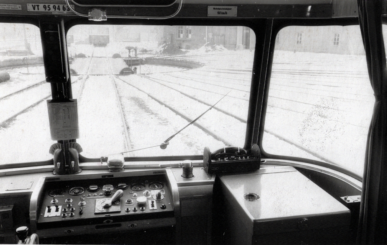 Schienenbus-Führerstand mit Einrichtungen für den Betriebszugfunk |