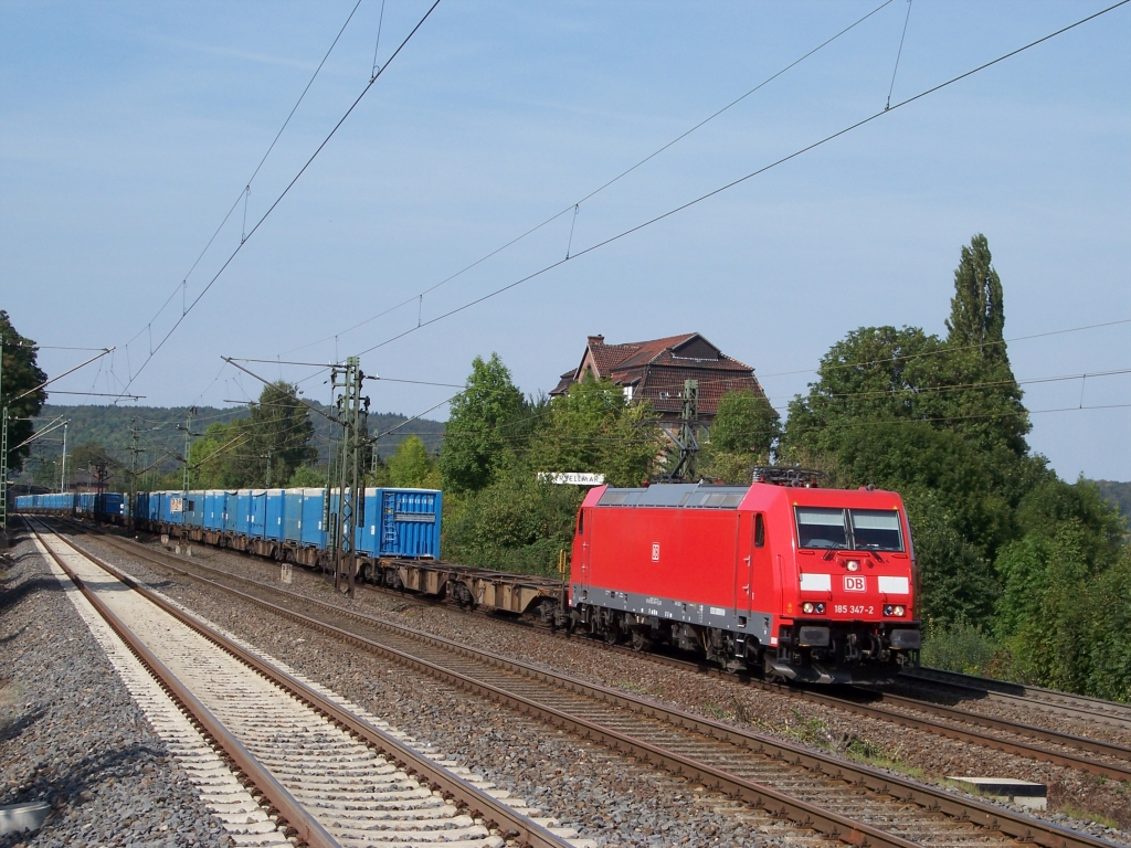 | 185 347 hat einen Containerzug im Schlepp und fädelt gerade aus der Hauptstrecke aus in Richtung Rbf. 18. September 2009 in Obervellmar- Osterberg. | ||||||||||||||||||||||||||||||||||||||||||||||||
