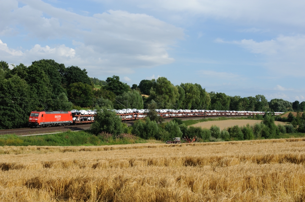 Ein schöner Tag geht zu Ende.Im Abendlicht fährt der DGS43100 am 7. Juli 2013 bei Hofgeismar gen Wanne-Eickel, während ich mit meiner Mutter einen Spaziergang machte. |