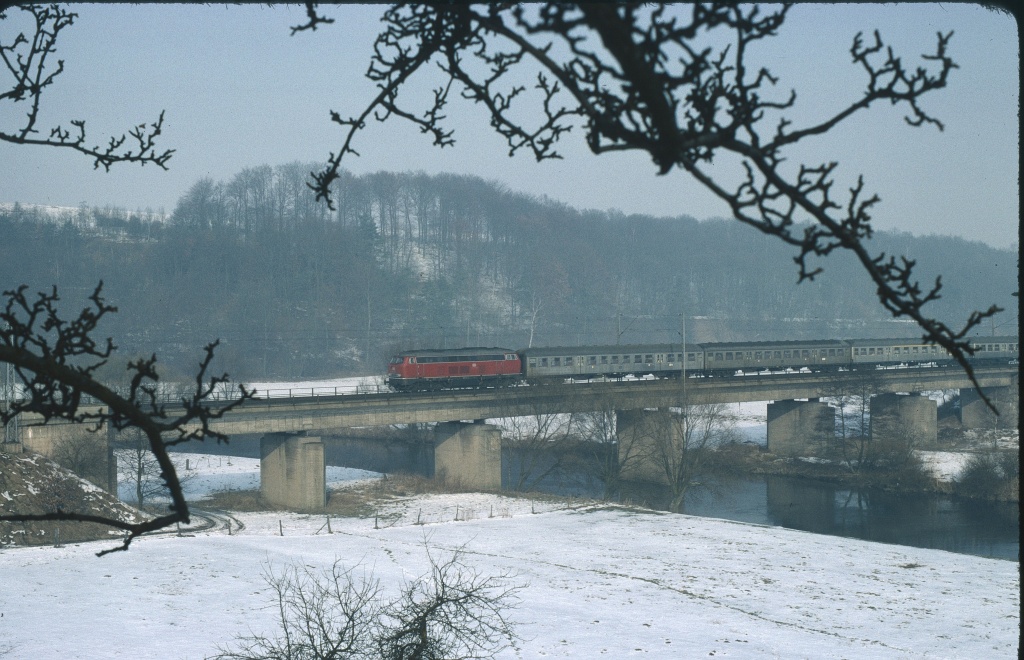 Ein "Bad Wildunger" überquert am 31.01.1981 die Brücke Richtung Süden. Foto: Volker Credé