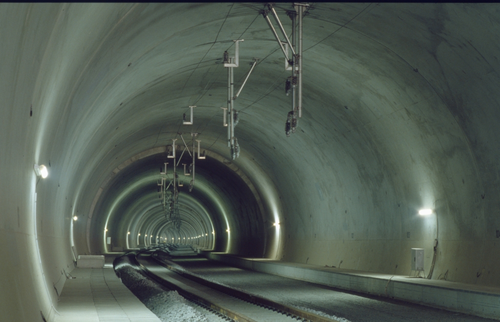 im hellsten Sonnenlicht aus dem 2708 Meter langen Wildsbergtunnel und wird dann auf die Tabrücke fahren.