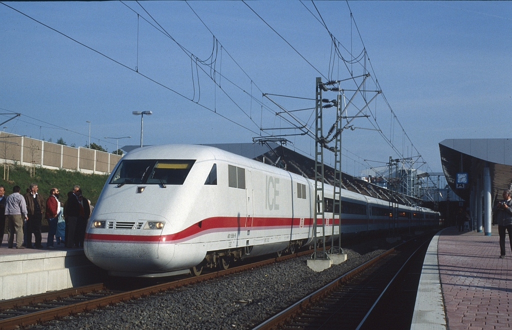401 556-6 als erster planmäßiger ICE in Kassel- Wilhelmshöhe am 2. Juni 1991 8:14