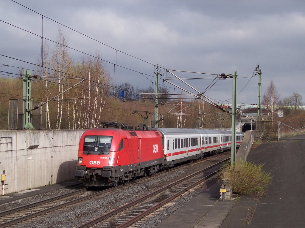 1116 198 verlässt mit dem verspäteten IC2083 "Königsee" den Tunnel Oberzwehren am 9. 4.2010.