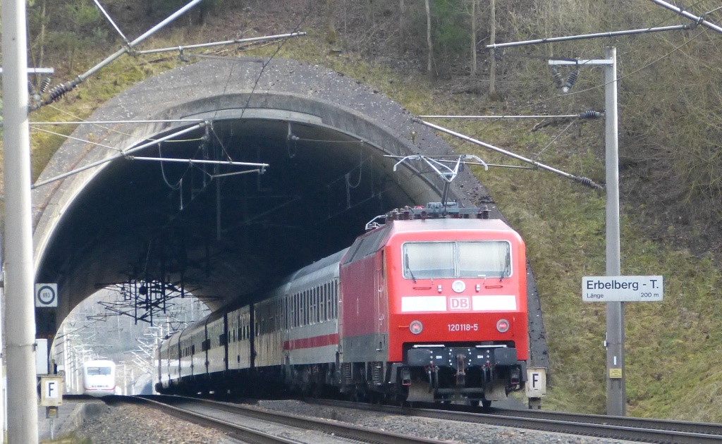 Am 08.03.2015 zieht 120 156-5 um 14:12 Uhr einen IC Richtung Süden. Foto: Stefan Umbach |