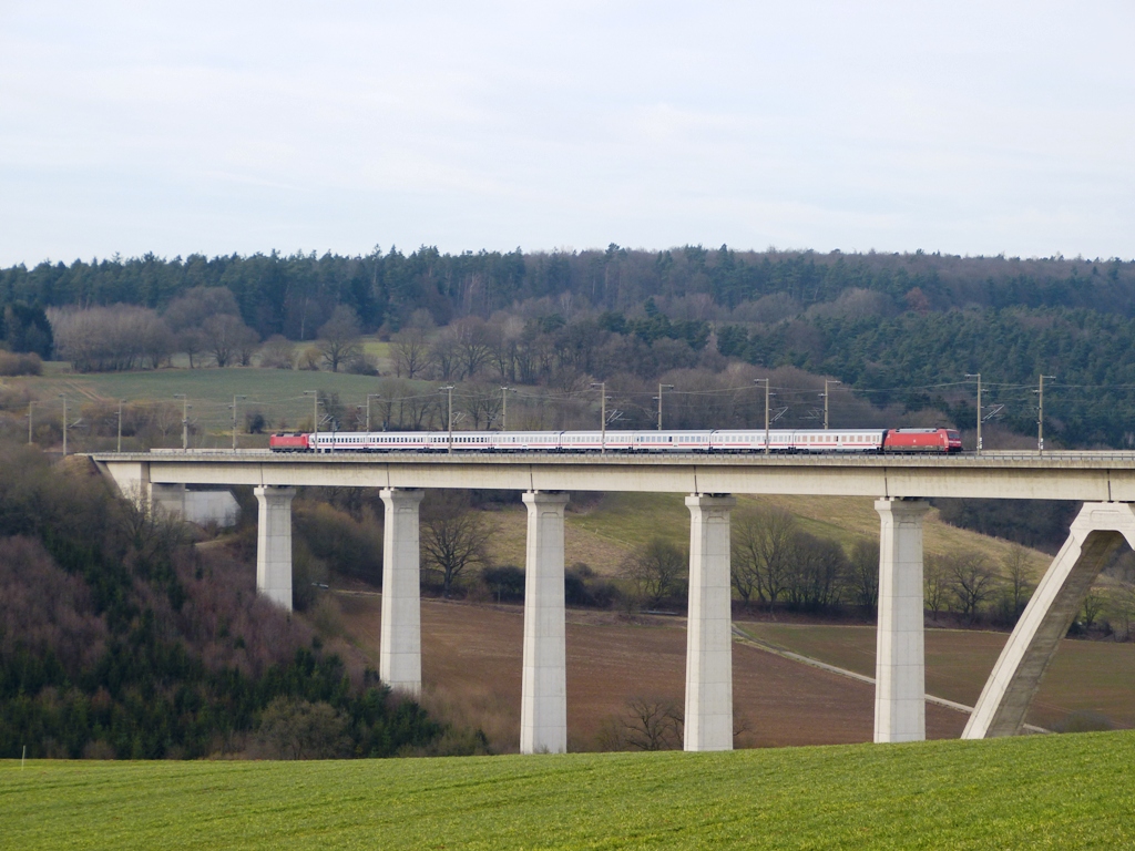 Wieder zurück an der Mülmisch-Talbrücke konnte um 15:42 Uhr der Münchner ICE in Form einer 7-teiligen und einer 5 teiligen Einheit |